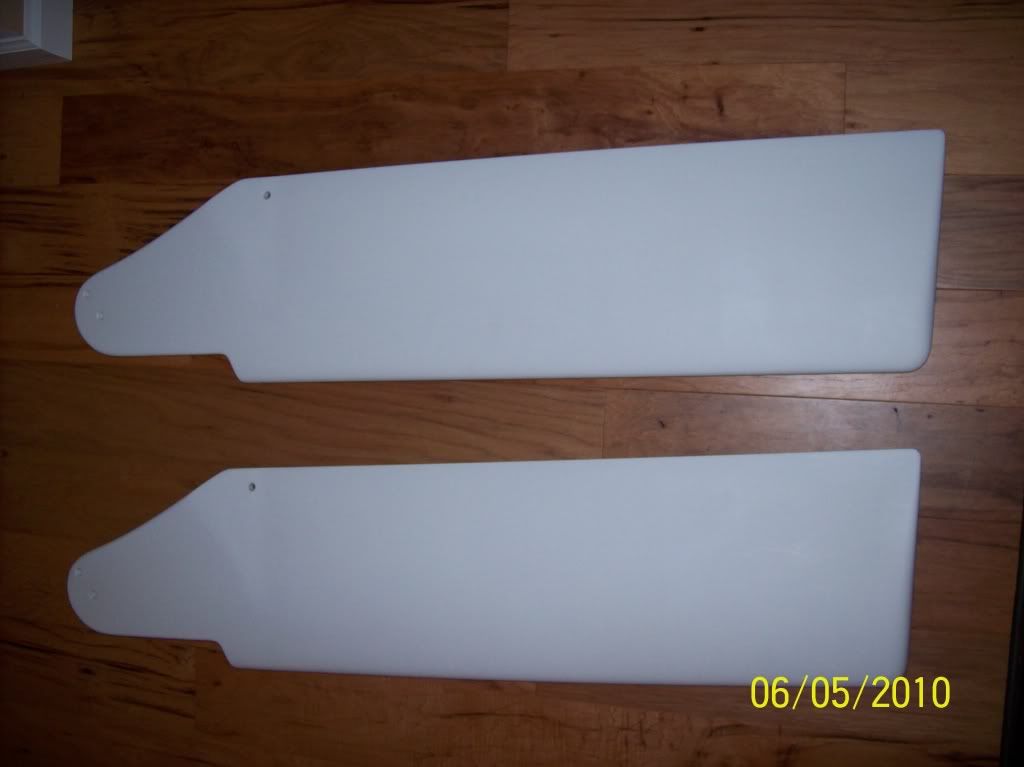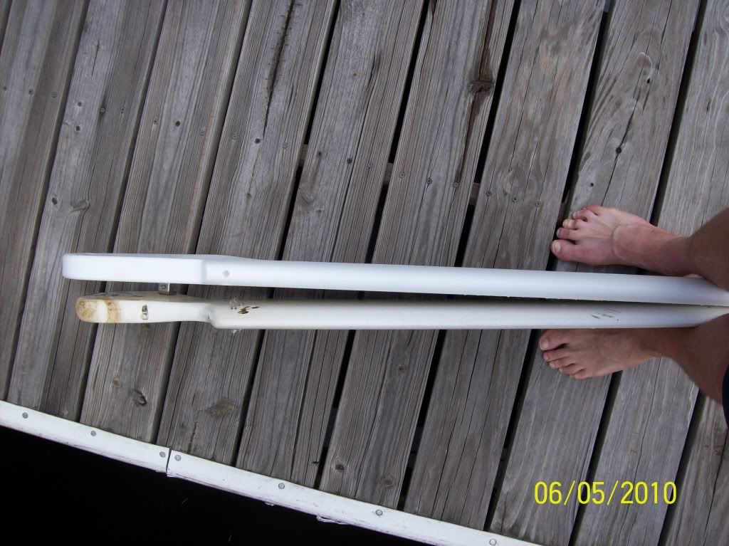 New rudders weigh in at about 16.2 lbs each----old rudders are about 10.5 lbs each